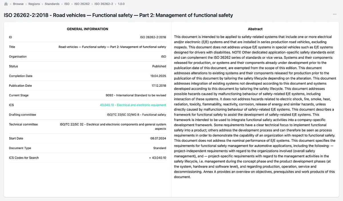 Certivity continuously collects, organizes, and monitors standards metadata from leading international publishers, including ISO, IEC, CEN, CENELEC, ASTM, UL, and SAE.